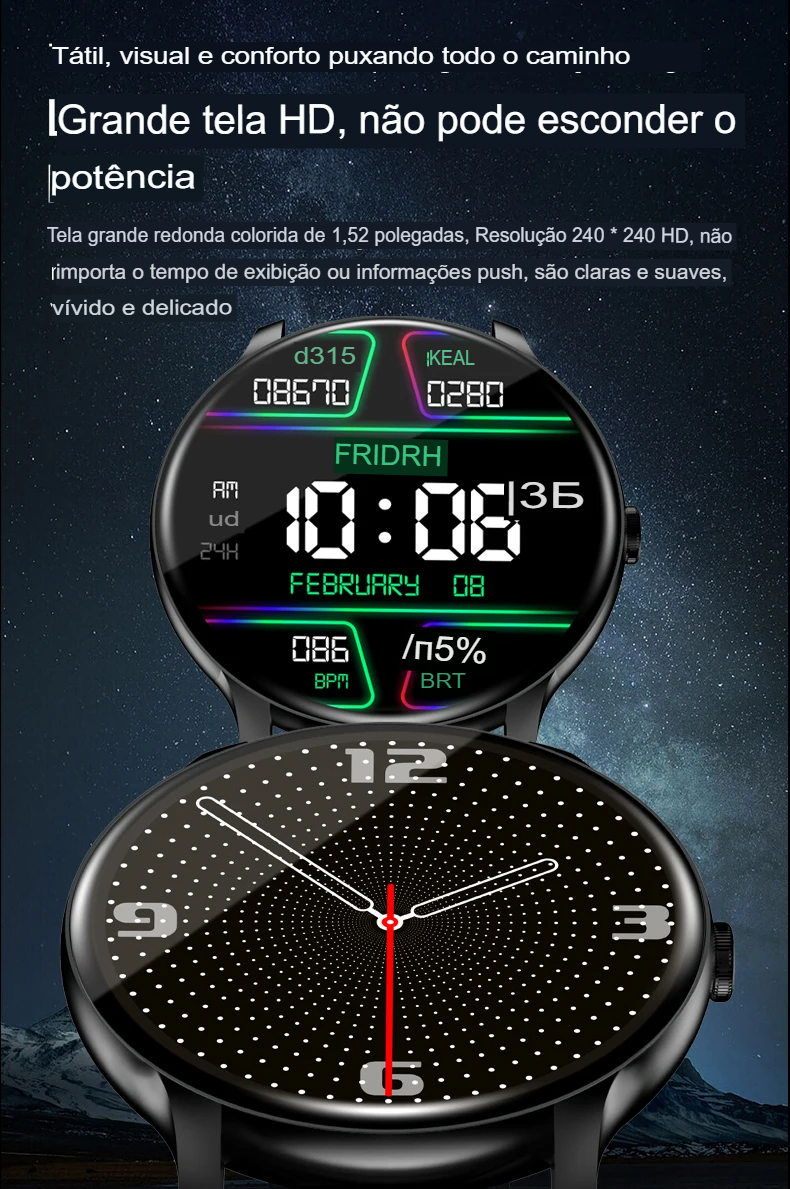 Tela: tela de toque completa de 1,52" 360 * 360