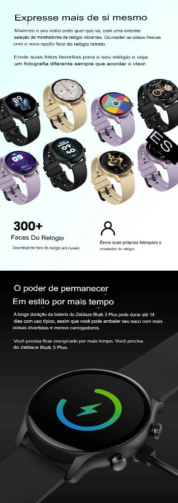 ?Smash Bigger Workout Goals?O relógio de fitness Zeblaze Btalk 3 Plus possui mais de 100 modos esportivos, permitindo que você obtenha dados de todos os seus esportes favoritos, como caminhar, correr e andar de bicicleta, bem como exercícios mais freeform como treinamento de força, yoga e muito mais.