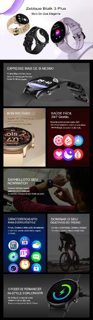 ?Super Slim & Light Design?Cor fora das linhas e abraçar o que o torna excepcional, com o elegante Zeblaze Btalk 3 Plus. Com 12,1mm super fino e 22,7g leve, o Btalk 3 Plus não só parece compacto, mas também é muito confortável de usar graças à sua pulseira de silicone líquido amigável para a pele.